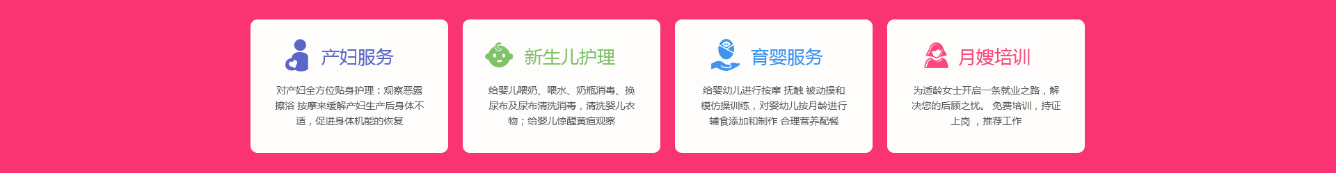 關于我們 產婦服務 新生兒護理 育嬰服務 月嫂培訓 催乳師培訓 舒心家政 月子餐 資質榮譽 服務案例